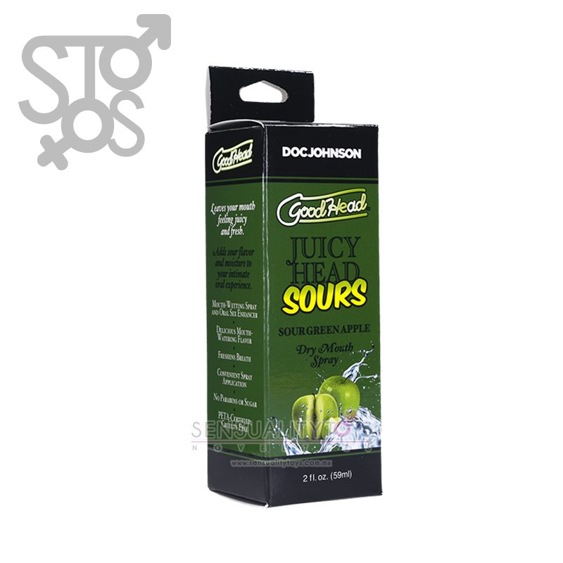Desterrar la boca seca durante el sexo oral con GoodHead Juicy Head Dry Mouth Spray. Este sabor a manzana verde agria viene en una práctica botella de 2 fl. oz. y proporciona humedad instantánea y aliento fresco. ¡Un par de spritzes es todo lo que necesitas para una noche de diversión sensual! Sin azúcar, apto para veganos, sin parabenos y seguro para el cuerpo.