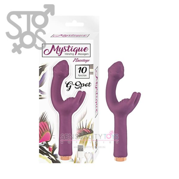 Mystique G-Spot cuenta con dos potentes motores para estimulación dual para ayudar a lograr esa gran ‘O’. Mantenga presionado el botón en la parte inferior del vibrador para encenderlo y luego vuelva a presionarlo para recorrer las 10 potentes funciones. El vibrador delgado y texturizado está perfectamente curvado para llegar al punto G, mientras que los firmes cosquillas gemelas rodean el clítoris. Para cargar, conecte los puntos de carga magnéticos del cargador a la base del producto y luego conecte el extremo USB a una fuente de alimentación. Limpiar con limpiador de juguetes antes y después de cada uso. Disfruta con un lubricante a base de agua.