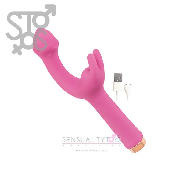 Mystique G-Spot cuenta con dos potentes motores para estimulación dual para ayudar a lograr esa gran ‘O’. Mantenga presionado el botón en la parte inferior del vibrador para encenderlo y luego vuelva a presionarlo para recorrer las 10 potentes funciones. El vibrador delgado y texturizado está perfectamente curvado para llegar al punto G, mientras que los firmes cosquillas gemelas rodean el clítoris. Para cargar, conecte los puntos de carga magnéticos del cargador a la base del producto y luego conecte el extremo USB a una fuente de alimentación. Limpiar con limpiador de juguetes antes y después de cada uso. Disfruta con un lubricante a base de agua.