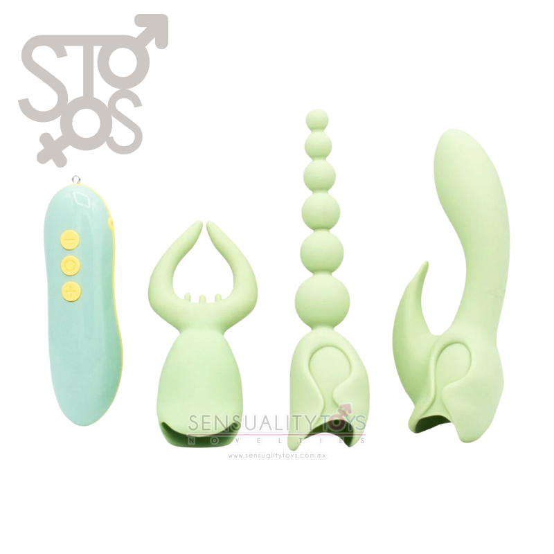 ·Kit de 3 estimuladores con cuerpo vibrador: conejito multiestimulante, rosario anal y tenaza estimuladora