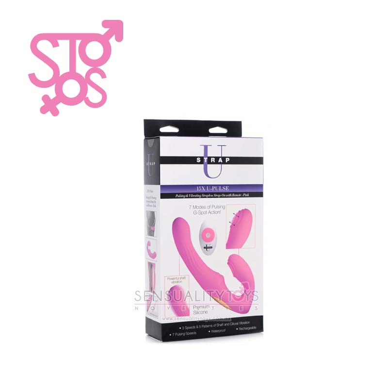 AG518 «SU 15X U-Pulse Pulsing & Vibrating Strapless Strap-On w/ Remote – Pink»