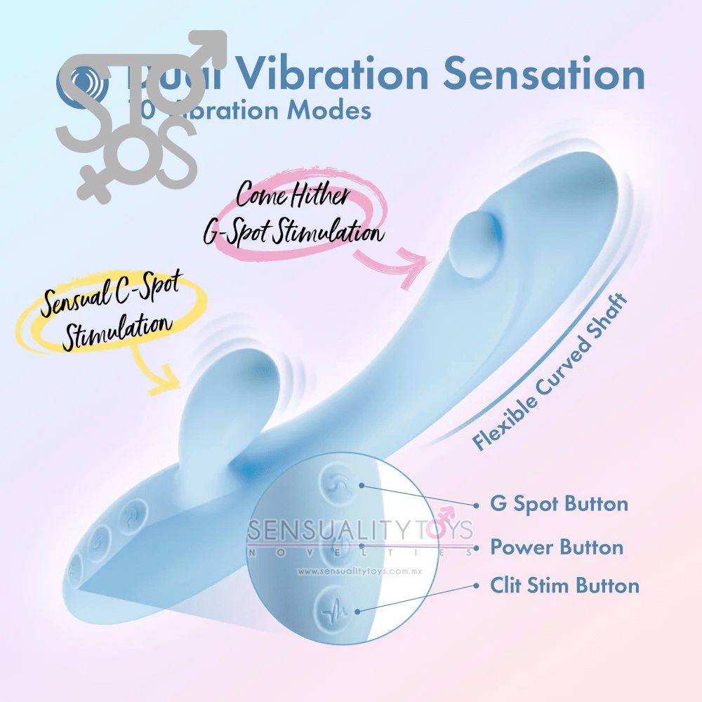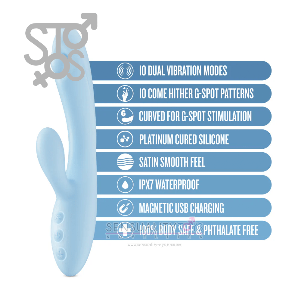 10 modos de vibración dual para el punto G y el placer del clítoris Masajeador giratorio de 360° con 3 velocidades que mejora las sensaciones del punto G Silicona curada con platino con una sensación suave y satinada Impermeable (IPX7) y recargable mediante USB magnético