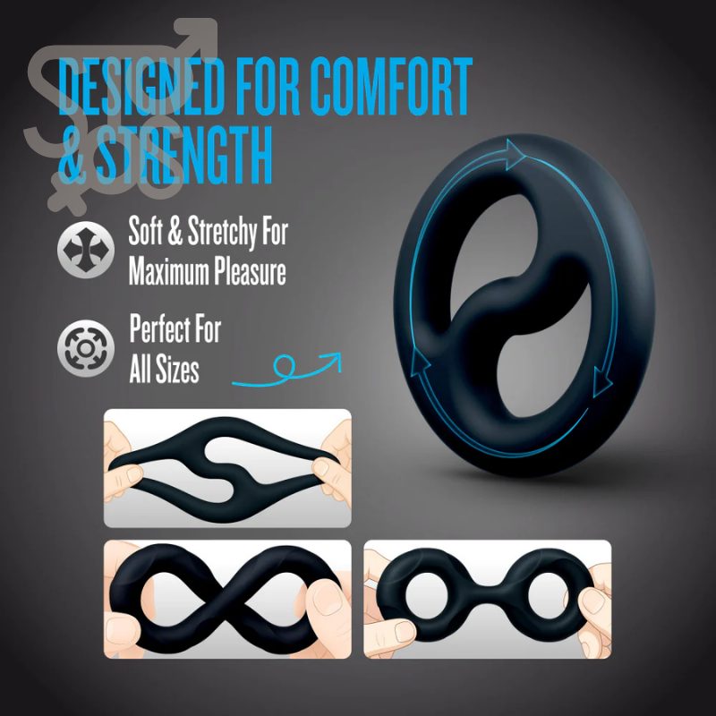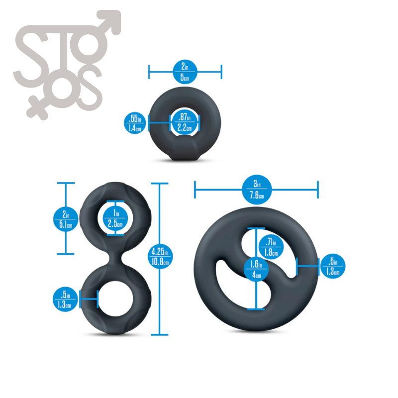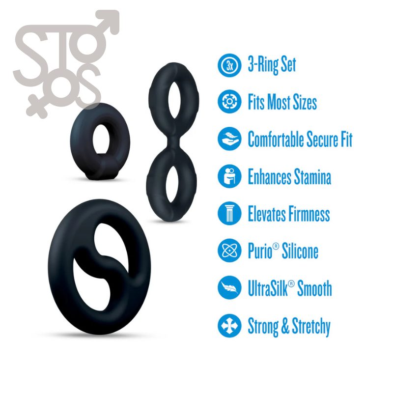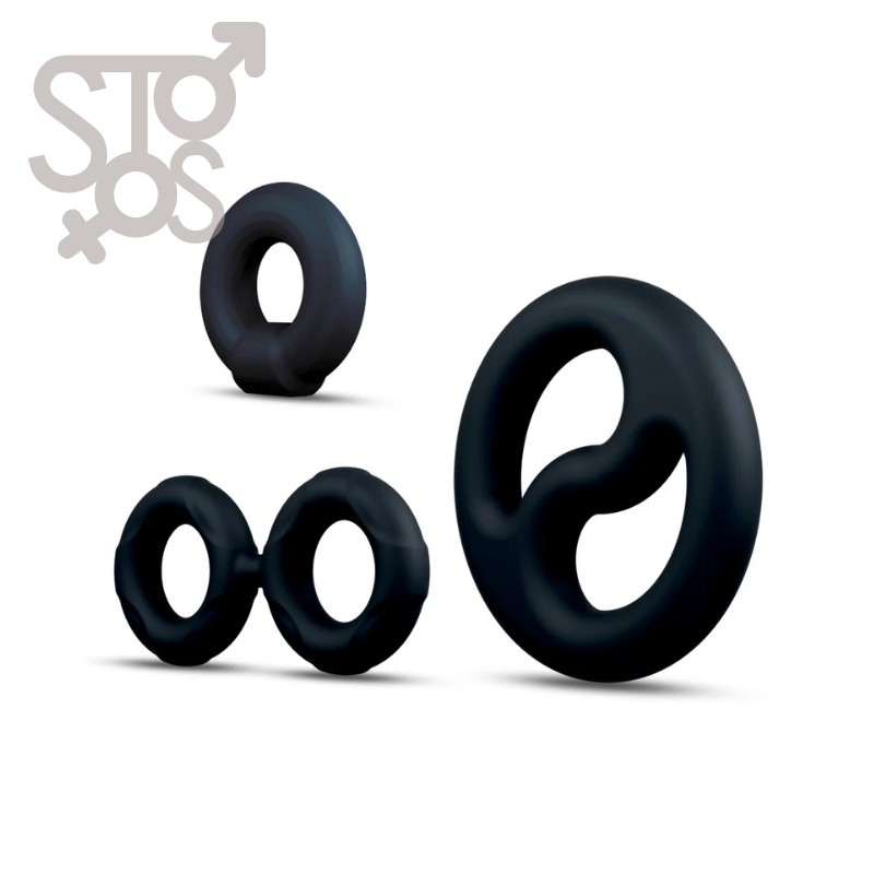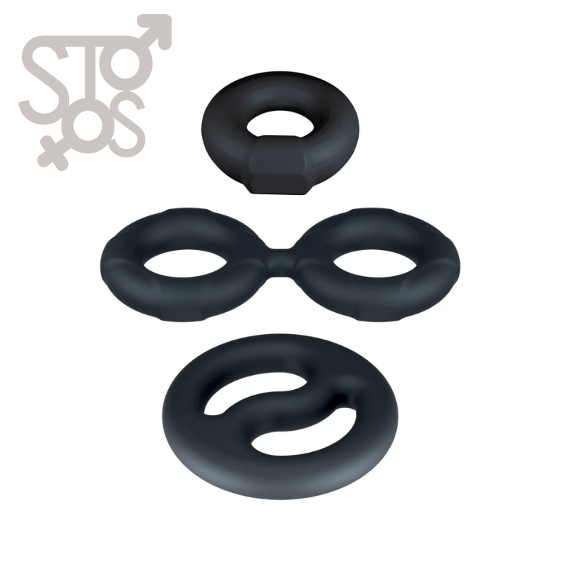 - Juego de 3 anillos que incluye 2 anillos para el pene y camilla de bolas.