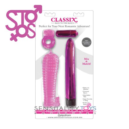Los cuatro favoritos clásicos se pueden usar juntos o por separado. La delgada línea de 7 «de velocidad múltiple se puede combinar con la manga texturizada ultra elástica y la potente bala para su propio conejo súper estimulante. ¡Intenta colocar el anillo en C alrededor de su eje o bolas, con o sin la bala vibradora, durante horas de juego sexy en pareja!
