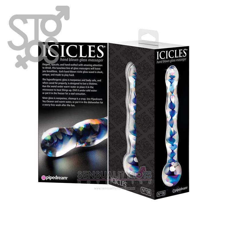 Elegante, exclusiva y hecha a mano con una increíble atención al detalle, esta lujosa línea de masajeadores de vidrio te dejará sin aliento. Cada varita de vidrio de carámbano soplada a mano es elegante, única y está hecha para jugar duro. El vidrio hipoalergénico no es poroso y seguro para el cuerpo, y cuando se cuida adecuadamente, está diseñado para durar toda la vida.