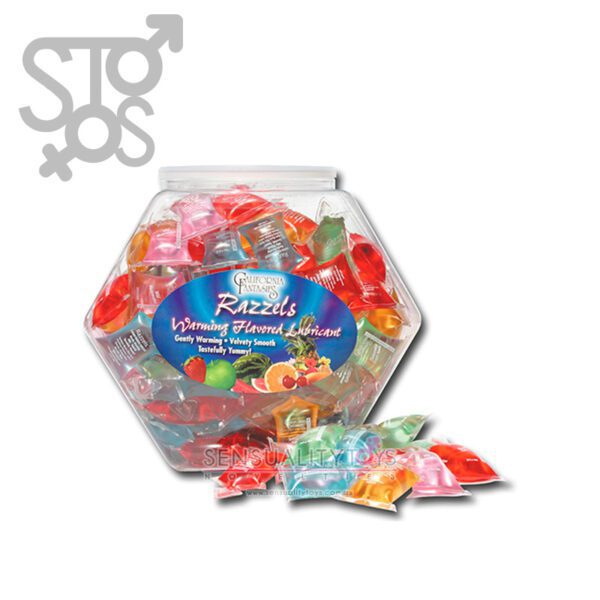 Razzels 3–in-1 Flavored Warming Lubricant es el mejor lubricante de calentamiento con sabor del mercado. Sin azúcar, sin regusto amargo. Experimente los deliciosos aromas y deliciosos sabores mientras los aplica en el cuerpo de su pareja. Sople suavemente sobre la piel para excitar y aumentar su experiencia placentera. A base de agua, compatible con condones de látex y amigable con los juguetes. Los lubricantes sensuales Flavored Razzels están orgullosamente formulados con ingredientes seguros para el cuerpo de alto grado y fabricados en los EE. UU.