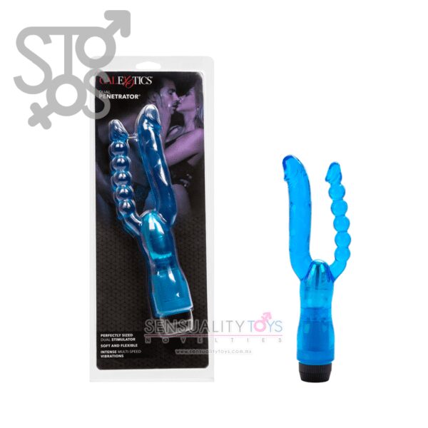 Disfruta del doble de excitación y éxtasis con el potente vibrador Dual Penetrator. Este vibrador de múltiples velocidades maleable y flexible cuenta con dos penetradores curvos para la mejor experiencia de estimulación vaginal y anal. Use el excitador para la exploración íntima en solitario o para la estimulación de los juegos previos de parejas exóticas.