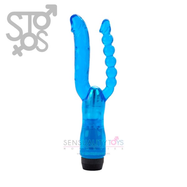 El vibrador fácil de usar está hecho de PVC Crystalessence ultra suave y suave, sin perfume y sin ftalatos. El vibrador flexible de doble extremo tiene un dong con forma de pene texturizado para tentar el placer vaginal y una sonda suave con cuentas para satisfacer la excitación anal. Los estimuladores duales están diseñados para funcionar en conjunto para garantizar un éxtasis alucinante. Para intensificar el hormigueo y las sensaciones placenteras, se recomienda utilizar un lubricante de calidad con este juguete.