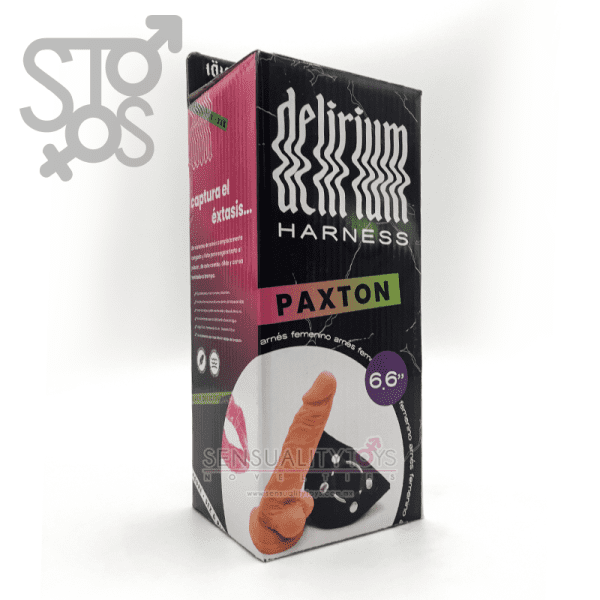 Sistema de arnés acolchonado y ajustable acompañado de uno de los Dildos Flexo.