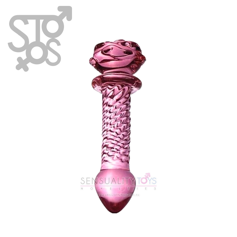 YF-343 PLUG ANAL CRISTAL ROSA CON TEXTURA Y FORMA DE FLOR
